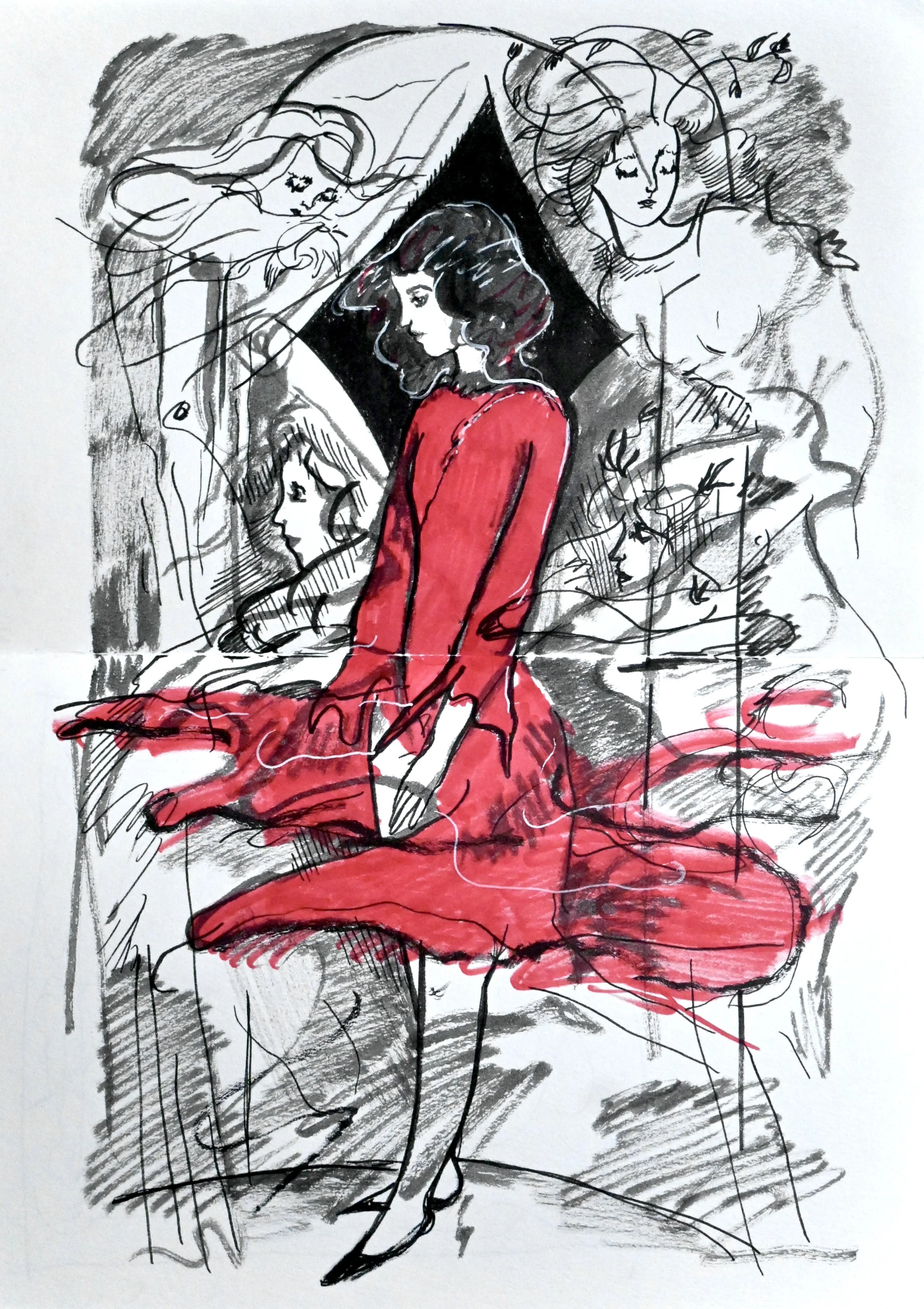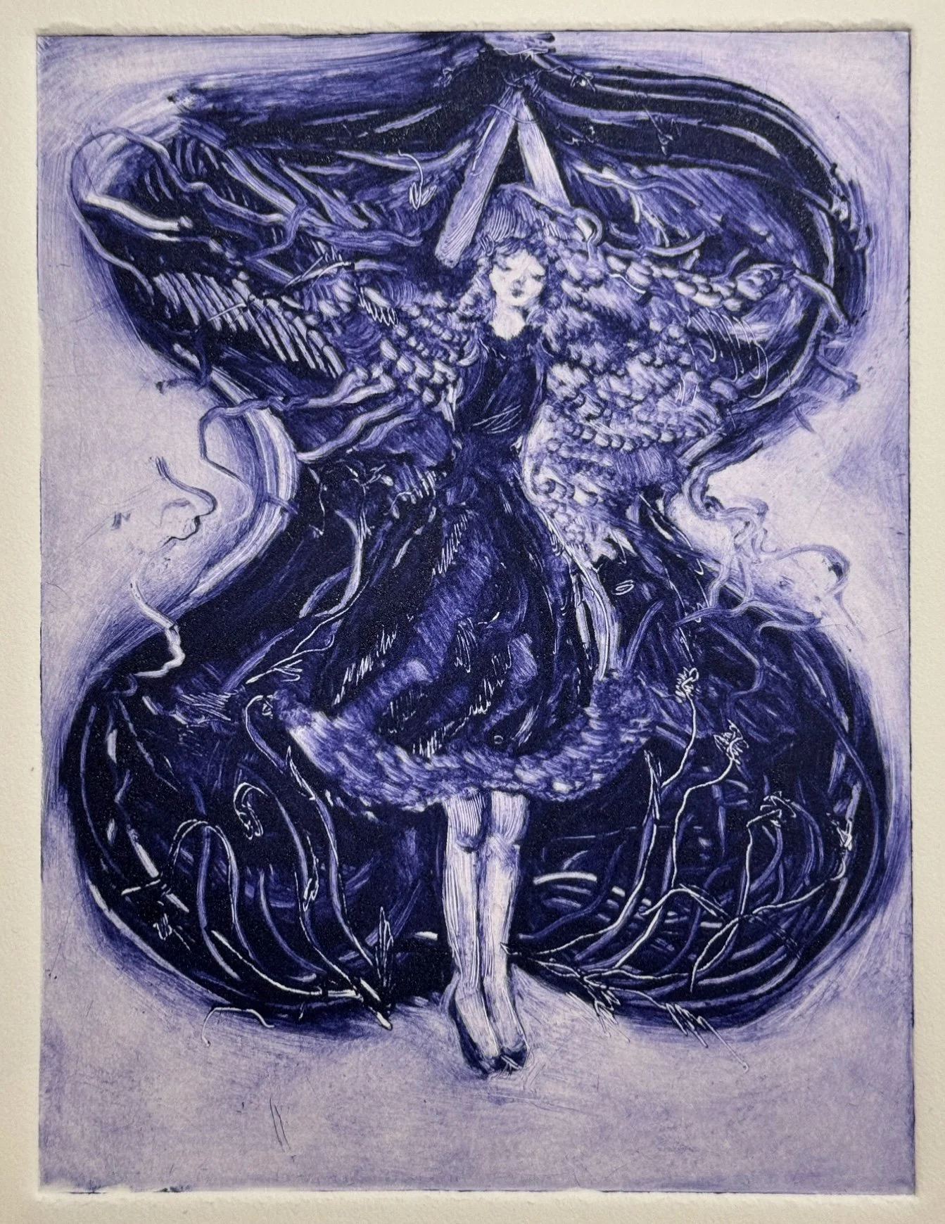Robyn Tang is a watercolor painter, printmaker, and illustrative artist. Embracing traditional mediums, she creates unique and personal pieces that evoke a quiet, elusive beauty. Her work gathers inspiration from old theater bulletins and surrealism, conveying a sense of mystery and fleeting time.